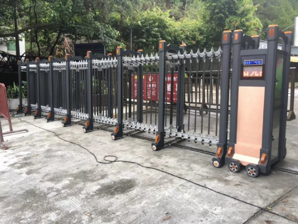伸缩门主要由门体、驱动器、控制系统构成。伸缩门的门体采用优质铝合金及普通方管