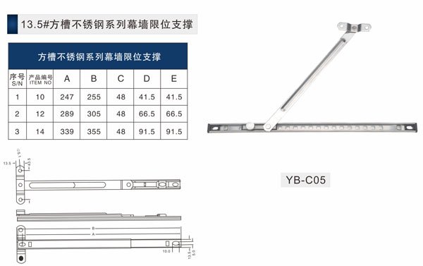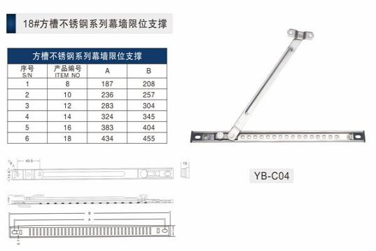 4.单边外推型窗撑适用于重行顶开式窗户;分左右单边开启,对称的包角结构使窗户关闭时准确可靠,密封性更好。