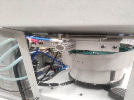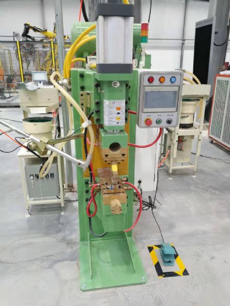 3-5螺母输送机调整完毕后,打开焊接机控制器电源,调整好产品的焊接参数,把工件放在下电极上,通过脚踏开关或其它按钮启动螺母输送机,输送螺母到达下电极的定位销上,螺母输送机会自动发信号给焊机进行焊接。