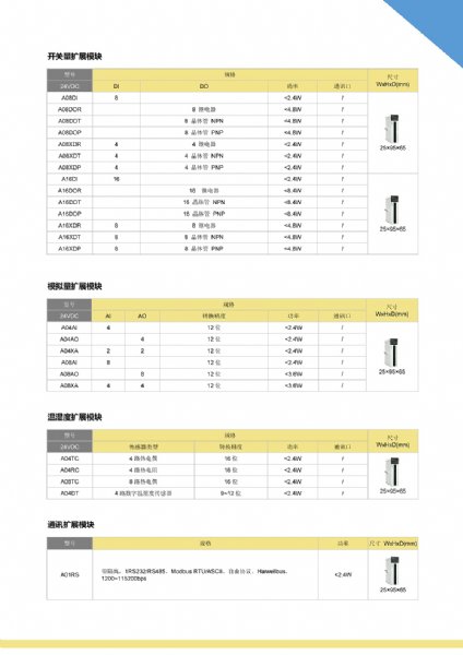 24VDC DI  DO  AI  AO 脉冲输入 脉冲输出  通讯口 功率 模块