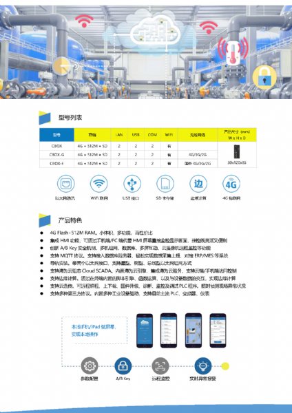 ● 支持云透传。远程编程、上下载、固件升级、诊断、监控及调试PLC程序,随时侦测现场异常状况