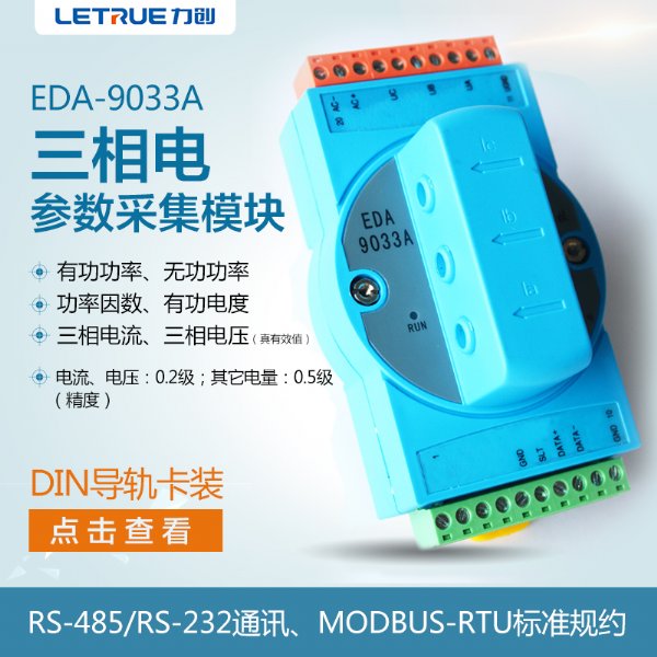 EDA9033A 模块是一智能型三相电参数数据综合采集模块;三表法准确测量三相三线制或三相四线制交流电路中的