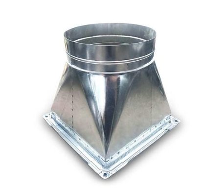 风机接头和方管要分支圆管处,使两个不同形状的管道连接在一起。