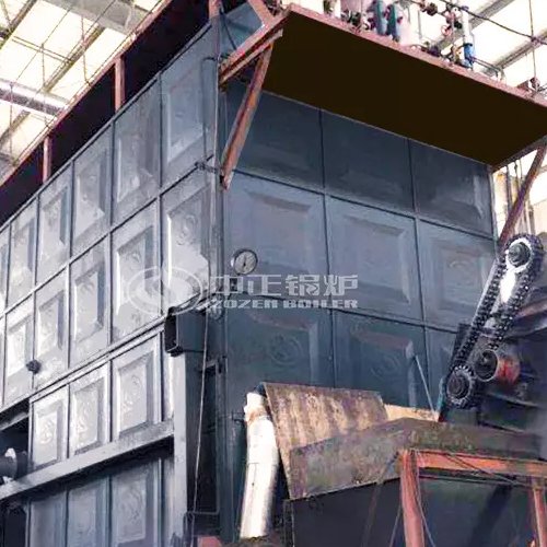 锅炉,采用快装或组装结构。4~6t/h为快装水管结构,在厂内全部整装后出厂;6~35t/h由上下二大件组成,上部大件为本体受热面,下部大件为燃烧设备。锅炉本体的前端为四周布置的水冷壁上部与锅筒连接下部与集箱连接组成燃烧室,以吸收炉膛辐射热,其后端在上下锅筒之间布置密集的对流管束,燃烧后的高温烟气经过二次回程横向冲刷对流受热面后引至单独布置的省煤器,*后进入