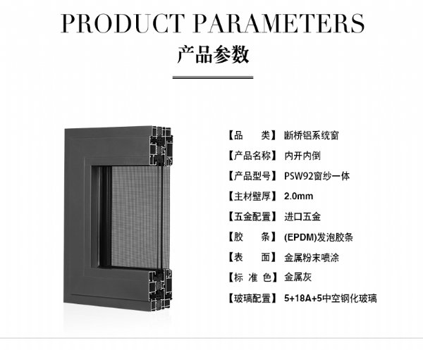 纱窗的功能窗。可实现内开及内开内倒等开启方式,纱窗可选择高透