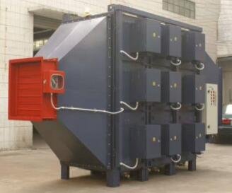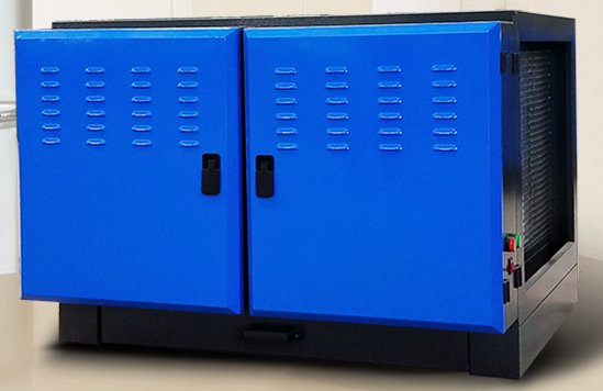 高压静电段: 经过预处理后的油烟浓度明显降低,油雾气中的小颗粒油雾滴、油气、有机物在高强度的高压静电场中被电离、分解、吸附、炭化,故设备具有极高的油雾去除效率。