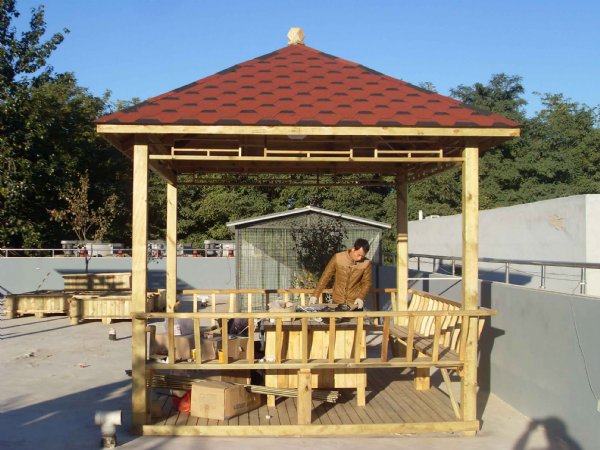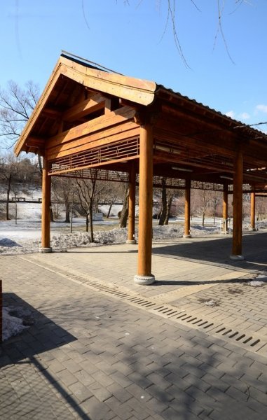凉亭也大多是木结构的。木构的凉亭,以木构架