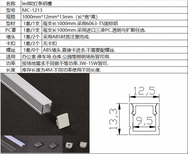 硬灯条U槽我们有现货供应160款之多,此款型号为Z-1213 规格为1000mm*12mm*13Mm