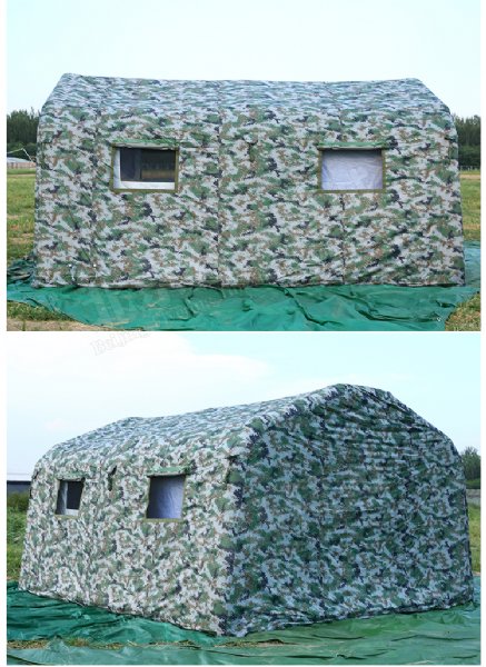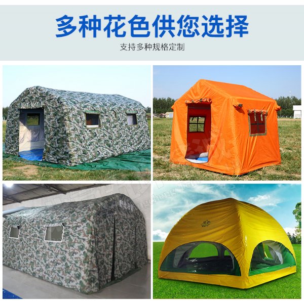 帐篷采用结构力学的原理设计框架,利用气体压强特性将气囊膨胀形成具有一定刚性的柱体,经过有机组合撑起帐篷的骨架。随着采用的骨架材料的强力大小,可以设定帐篷的承重大小;采用高分子涂层的性能优劣,决定着框架的使用寿命与框架刚性的维持;而气室设定的合理性,则决定着这个框架的撑起极限。