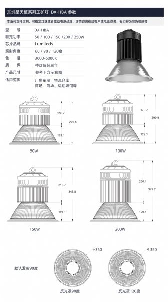 东圳星LED工矿厂房工厂灯车间照明灯铜管散热导热好