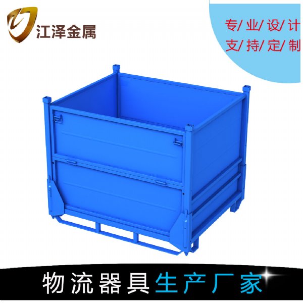 钢板制作,耐锈能力强,实用于高低温及常温载重场所。 金属周转箱 金属周转箱标准结构及图片 2、金属周转箱标准存放,规格统一,易于库存的清点,并可单独分层小量卸取存料。 3、金属周转箱采用独特的外形设计,强度高。 4、节约空间,金属周转箱真正实现立体化存储,不用时,金属周转箱可以折叠堆积。 5、金属周转箱采用钢板焊接结构,比