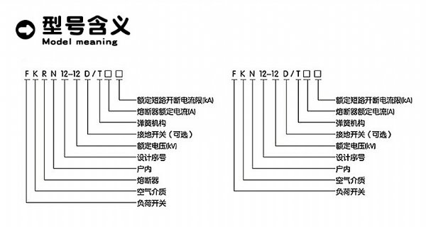 熔断器组合电器(以下简称FKN-12R/400组合电器)是FKN-12负荷开关断与S口LAJ-12(XRNT口-12)高压限流式熔断器组合在一起的户内高压开关设备。它可以可靠开断直至短路电流的任何电流:负荷开关开断工作电流,熔断器开断短路电流,联合开断工作电流与全短路电流之间的任何过电流,同时熔断器通过其撞击器使负荷开关分闸FKN-12型交流高压负荷开关是一种新型产气式户内高压负荷开关,适用于交流50Hz,额定电压12kV的三相交流电力系统中,作为开断负荷电流及关合短路电流之用。