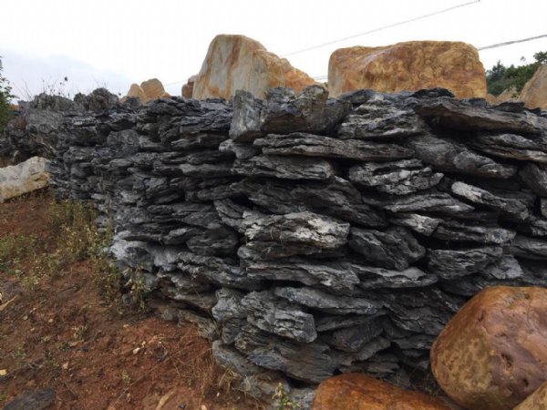 黄蜡石等假山石是天然之物,有天然的纹路、概括、外型,质地又纯净,朴实无华,可是归于无生命的建材一类,因而假山石是天然环境与建筑空间的一种过渡,一种中间体,无园不石,但只能作部分景点装点、提示、寄予、弥补。英石在一些私人别墅及庭院中也比较常用,颜色呈青色,外表皴纹杂乱,皴裂很浑,常常透空。吸水功能通常,透漏的突点较明显。太湖石还有黄蜡石由于价格昂贵,一般来说独立成景的大块石在庭院中常常出现,可小块的假山石用量却很少用到这几种石材,主要是由于开采量日益减少的缘故。