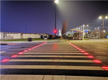 交站台与人行道之间连接斑马线等,我们可以选择智慧人行横道基础版解决方案。