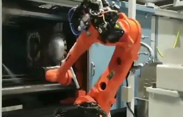 炊具的热铸成型及冲压整形生产线是有一台50kg的压铸版机器人以及一台20kg的搬运机器人实现的,压铸版机器人相较于普通搬运机器人可以克服高温、湿度大、粉尘多的的恶劣环境,且可以24小时连续运行,提升了企业的生产效率,同时也避免了有毒有害的工作环境对作业人员的身体危害,实现真正的安全生产。