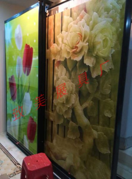 展示架等等种类泛多,陶瓷展具系列呢,有各种款式的翻页式、推拉式、