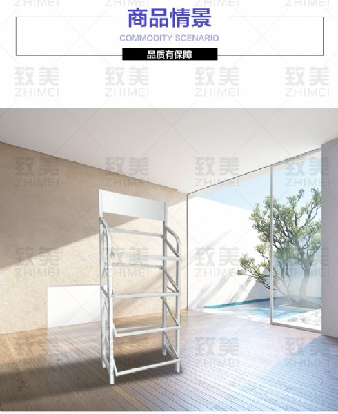 现货宝贝外形尺寸长1330MM*宽240MM*高1600MM,适合放300*600电器8台,一体机分体机都可以放置,此架子包含广告位,您只需要贴上自己的广告即可