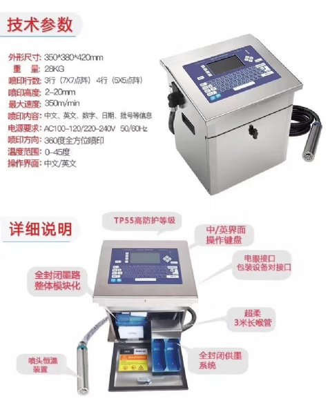喷码机有各种不同的墨水可供选择,不论是纸张、塑胶、金属、玻璃、坚硬的表面或是柔软易碎的表面均可得到良好的喷印效果。