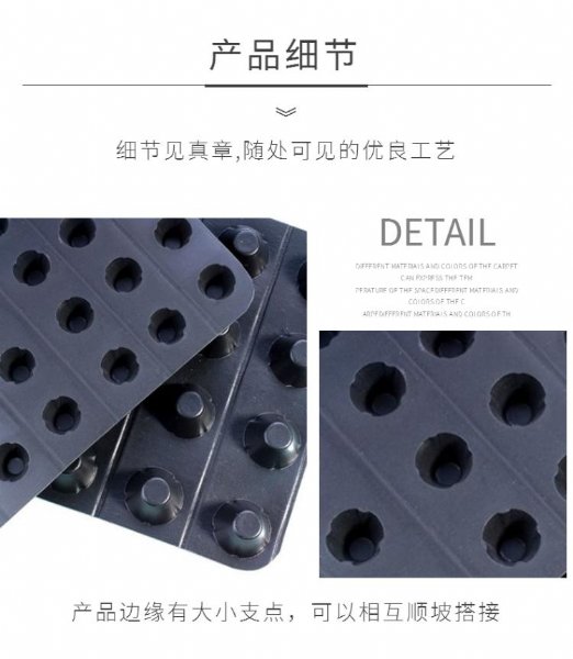 使用排水板+土工布+网格可以形成一个良好的架空层,这样就把多余的雨水和灌溉水都去,而且排水板可以有效防止植物根系生长,起到阻根的作用,控制地下水位、土壤的盐碱化,从而减轻地下车库结构层的荷载,了楼层的系数比起