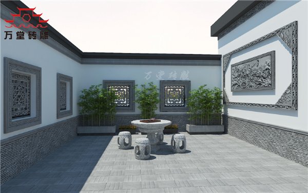 仿古砖雕,比砖雕划算,比普通砖瓦贵气,这也是这家房屋的主人选择仿古砖雕对自家院子进行装饰的一个主要原因。