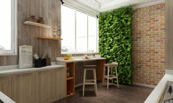 衔接起来,节省空间的同时,又增添了新意,墙壁上的绿植是为主展现出一种贴近自然的生活。