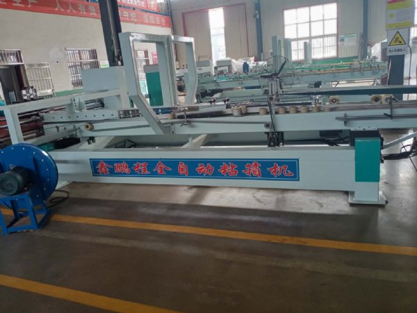 河北鑫鹏程全自动钉箱机厂家生产的全自动钉箱机特点;自动折迭,自动计数,自动堆码输出;自动供纸、自动涂胶、自动折叠、自动校正、自动计数、自动堆码;变频调速、触摸屏输入数据。能有效克服传统钉箱粘箱过程中出现的