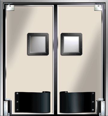 钢材料,防锈防腐蚀。可进行有水清洗。有单开和双开两种。带防撞装置,可以过