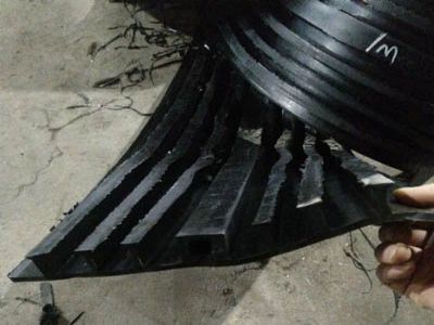 第四步:先将一侧止水带粘于胶板之上,再将另一侧止水带与粘于胶板上的止水带对齐至45°角粘于胶板之上。然后用木块沿止水带凹槽用木锤击打,使其粘牢。凸出部位用手辊压,使其粘紧。