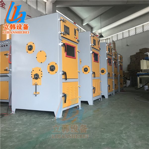 东莞立韩工业设备厂供应履带式自动毛边机,适用于电木(骨架)、合金压铸件、ABS、DAP、LCP、PPS等热固性塑料材质之毛边可有效的去除,用于较不怕碰撞的大量小零件产品大批量自动去毛刺喷砂加工,如
