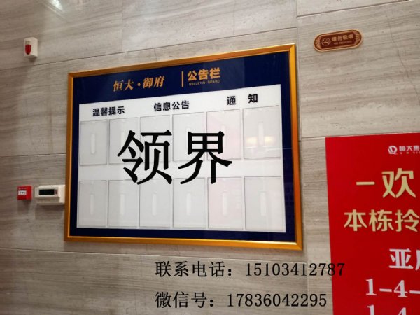 阳光板,也可是玻璃,或不锈钢板。其宽度一般在两米五左右,也有竖版的公告栏,宽度在一米左右。制定公告栏的宽度时应考虑公告栏内部放置内容的尺寸,宽度一般*好是海报宽度的整数倍,再加十几公分,这样能够更有效的利用公告栏的宣传空间。单元公告栏的宽度一般在一米以内,横版的较常见一些。常用规格如600mm*800mm。
