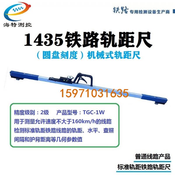 【产品特点】标准轨距1435mm铁路轨距尺是用于测量铁路线路轨距、超高、查照间隔和护背距离的铁路*计量器具。通过刻度轮盘、水泡来显示超高。