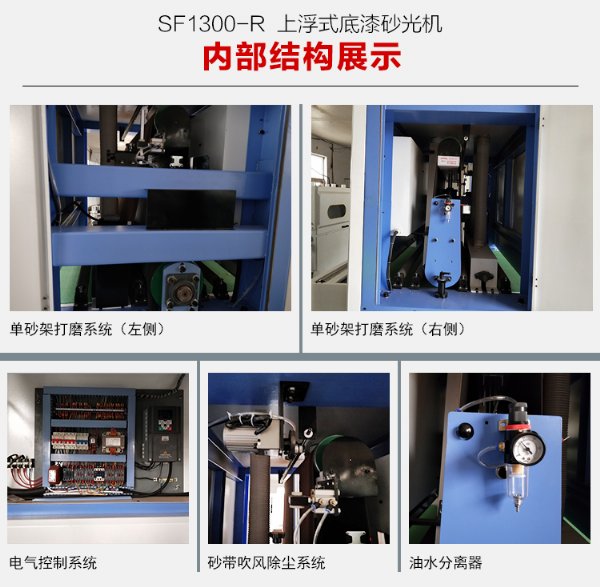 5. 砂架辊筒采用邵氏25度天然软胶辊,底漆打磨精度高、光洁度好。