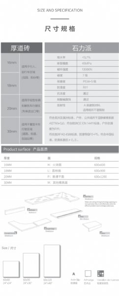 瓷砖领域持续*,以“厚德载物”的文化核心理念为指引,自主创新研制出富有专业优势的室外厚砖系列。