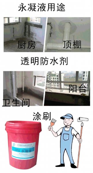 防水材料;永凝液DPS 中的 DPS,即 Deep Penetration Sealer (深渗透结晶型防水材料)的缩写。可用于任何情况的混凝土基面(混凝土表面潮湿可以施工,但不可以有明水)。比如地下室、屋面、厨卫、桥梁、隧道、污水池、电厂等。