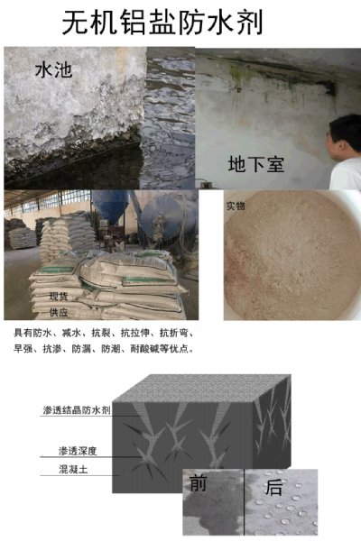 无机铝盐防水剂是以无机铝盐为主体的多种无机盐类复合制成。把它渗入
