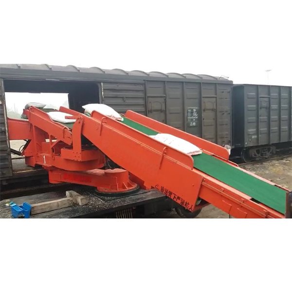 其结构设计上的多功能组合:底盘升降+工作装置滑移+伸缩机回转+伸缩机变幅+伸缩机伸缩,使得该机可以适应各种不同装卸条件和场地。除了满足铁路货车(棚车)装卸外,该机还可适用于铁路货车敞车、飞机机仓、货仓、月台、汽车、集装箱间袋装货物的装卸。