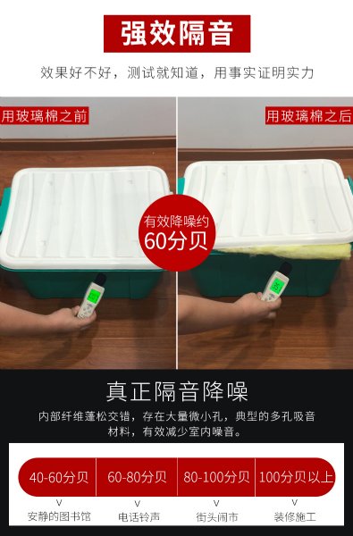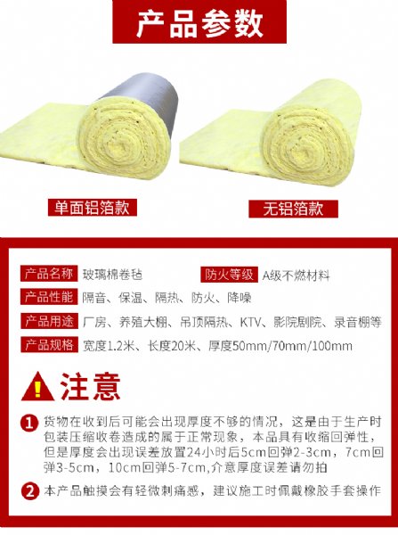 制冷设备,家用电器的减震、吸声、降噪处理,效果十分理想。 有铝箔贴面的玻璃棉毡,还具有较强的抗热 辐射能力,是高温车间、控制室、机房内壁、隔间及平顶很好的内衬材料。