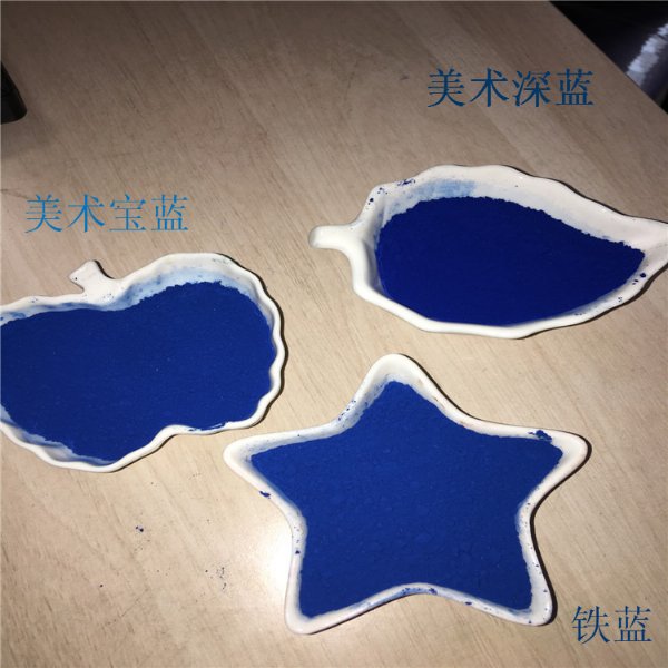 深蓝色和浅蓝色粉末,色泽鲜艳,着色力强,遮盖力略差。粉质较坚硬。质量标准:着色力95~105%吸油量15-30%水份1.0%,筛余物(200目筛)≤1.0%,水溶物1.0%。