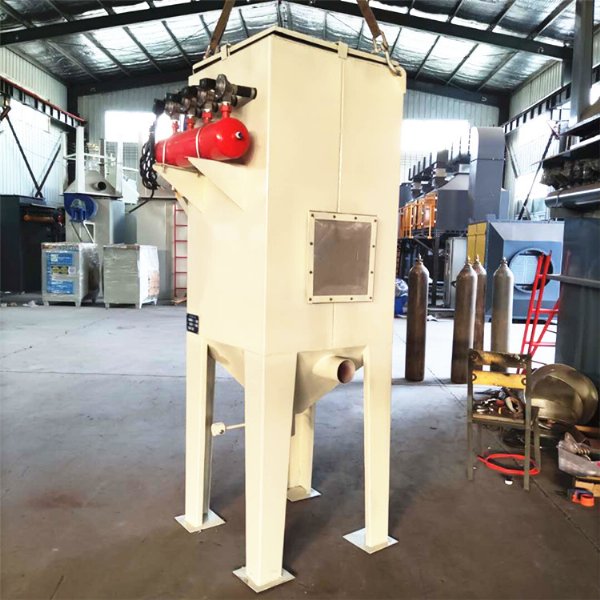 风管进入到除尘系统内部,粉尘受惯性或自然沉降等落入布袋,经滤袋过滤后,尘粒被滞留在布袋的外侧,净化后的气体由布袋内部进入上箱体,再由阀板孔、排风口排入大气,从而达到净化的目的。
