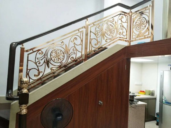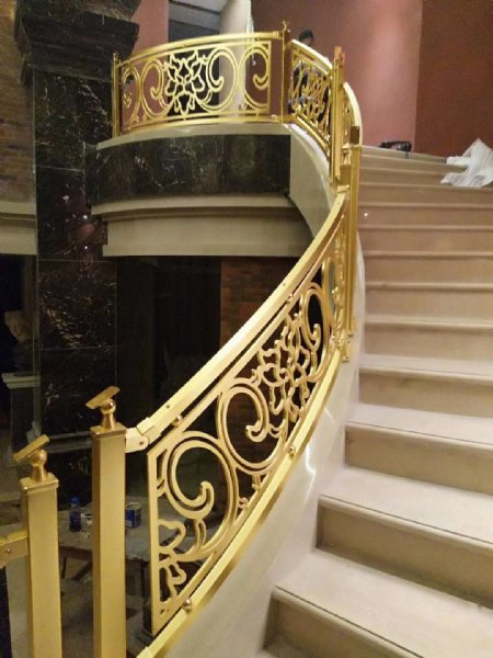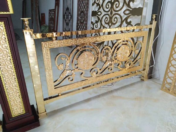 佛山工厂电镀镜面K金色铜雕花围栏设计新颖