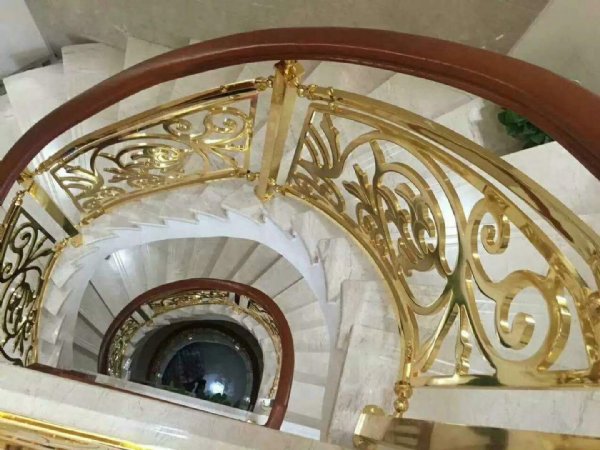 弧形旋转别墅铜艺楼梯护栏实体工厂