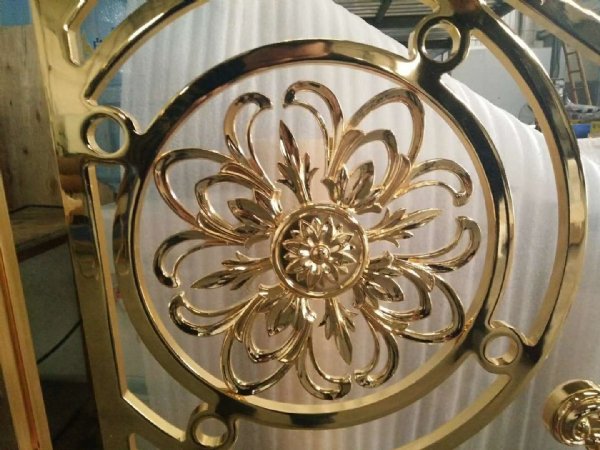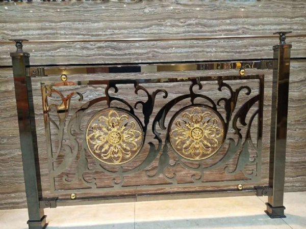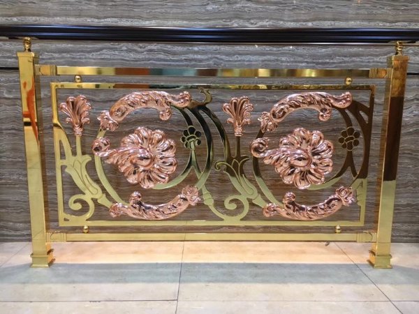 佛山工厂电镀镜面K金色铜雕花围栏设计新颖