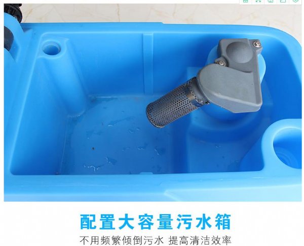 5.弧形吸水扒设计。等压型弧形吸水扒在180度大转弯时能全面回收地面上所有的污水。加压刷盘,吸力强劲,打扫更干净。
