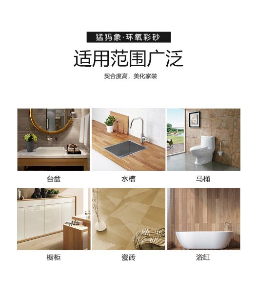 彩砂为全新一代水性环氧类绿色环保美缝装饰材料,色彩丰富靓丽,磨砂质感强,防污防霉更强,易清洁、耐擦洗且有效解决了