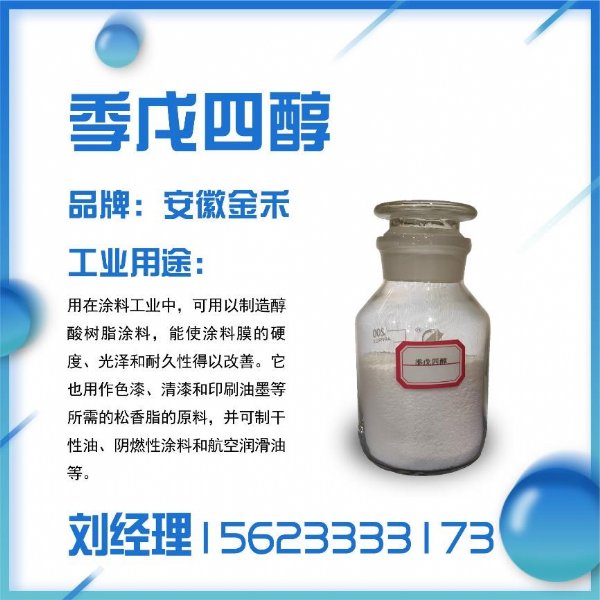 聚氯乙烯增塑剂,其环氧衍生物则是生产非离生表面活性剂的原料。季戊四醇易与金属形成络合物,也在洗涤剂配方中作为硬水软化剂使用。此外,还用于医药、农药等生产。季戊四醇分子中含有四个等同的羟甲基,具有高度的对称性,因此常被用作多官能团化合物的制取原料。由它硝化可以制得季戊四醇四硝酸酯(太安,PETN),是一种烈性炸药;酯化可得季戊四醇三