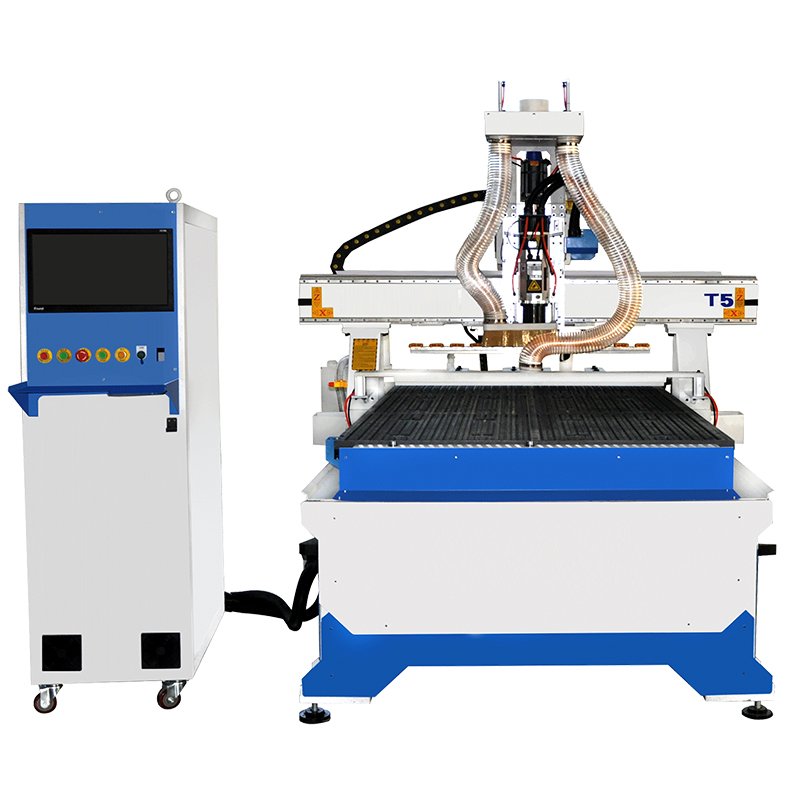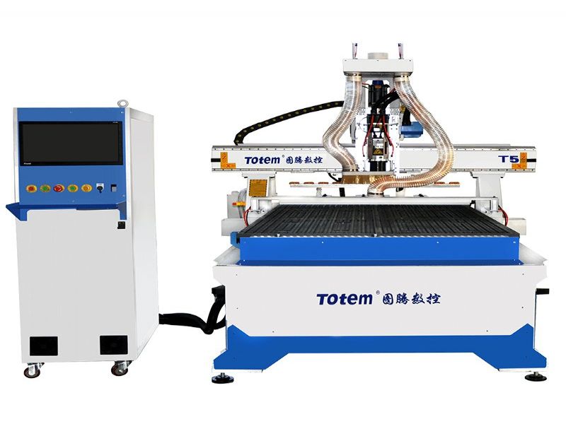 操作界面人性化,操作简单方便,操作工经过简单培训即可上岗,设备加工速度快,效率高,加工精度高。用图腾加工中心生产吸塑柜门的情况下8小时约可以加工50-80平方。12把直排式刀库,结构简单,维护方便,5秒极速换刀。