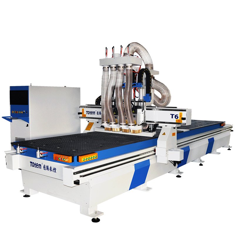 图腾双工位开料机采用6.0KW大功率风冷主轴、德国进口斜齿条、台湾进口方形