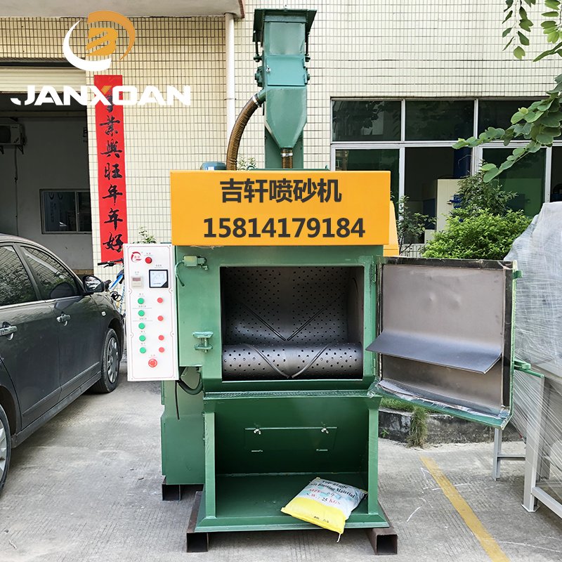 (1)将弹丸规定量(150kg),陆续加入滚筒内,然后放入工件,关闭室门,准备开车。
