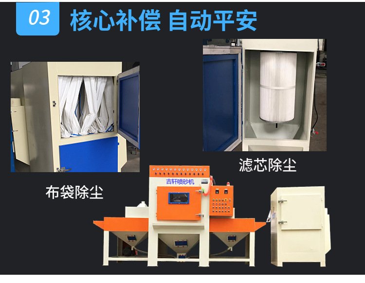 2.要看产品的形状,选择喷砂机的规格,一般一米以下的都有固定的规格,特别大的要订做或选择开放式的。