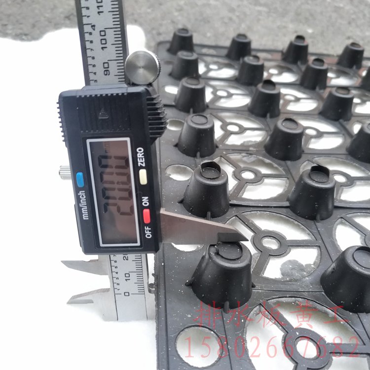 聚乙烯(hdpe)为原料塑胶底板经过冲压制成圆锥突台或者加劲肋的凸点(或中空圆柱形多孔)而成,出厂规格一般为2.4米宽,12.5米长,整卷总共30m²,可根据需求定制规格,整捆打包,运输方便。